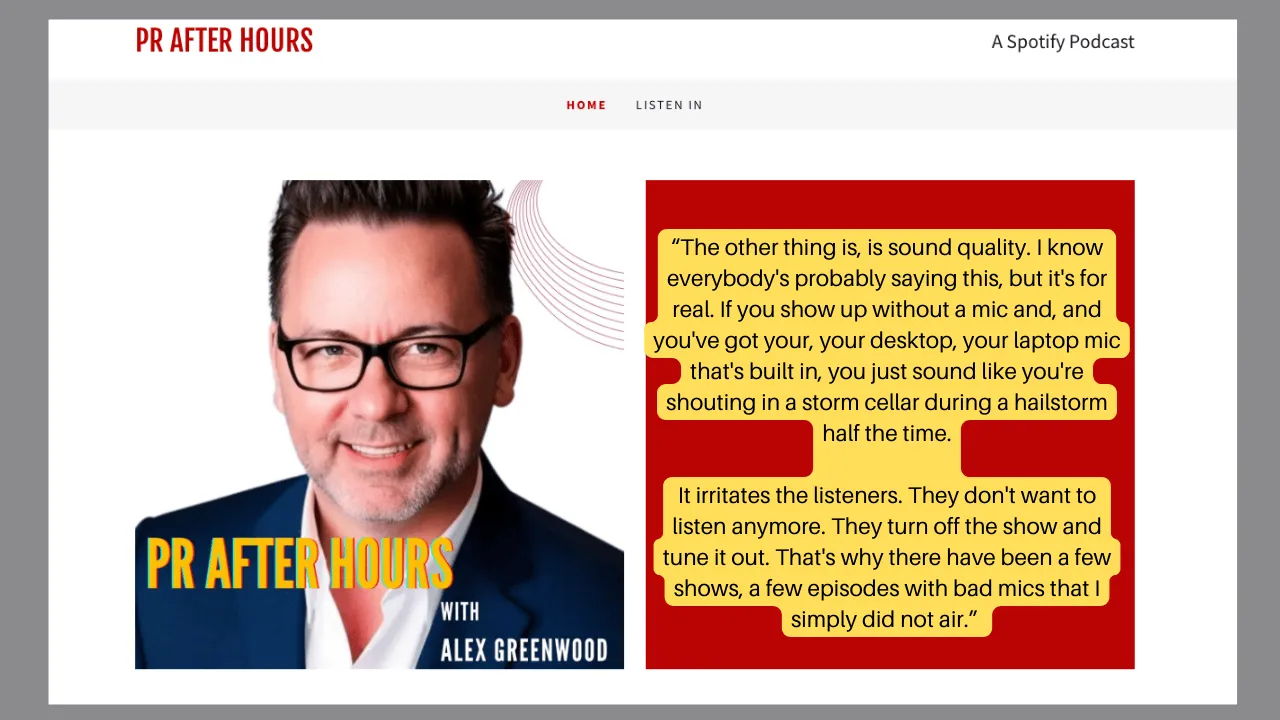 It irritates the listeners. They don't want to listen anymore. They turn off the show and tune it out. That's why there have been a few shows, a few episodes with bad mics that I simply did not air. "