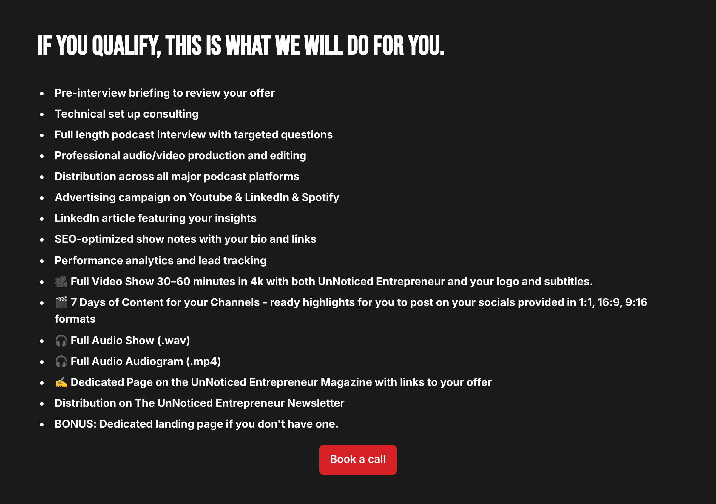 Book a time to discuss if your profile fits the show, and which package would meet your business goals.