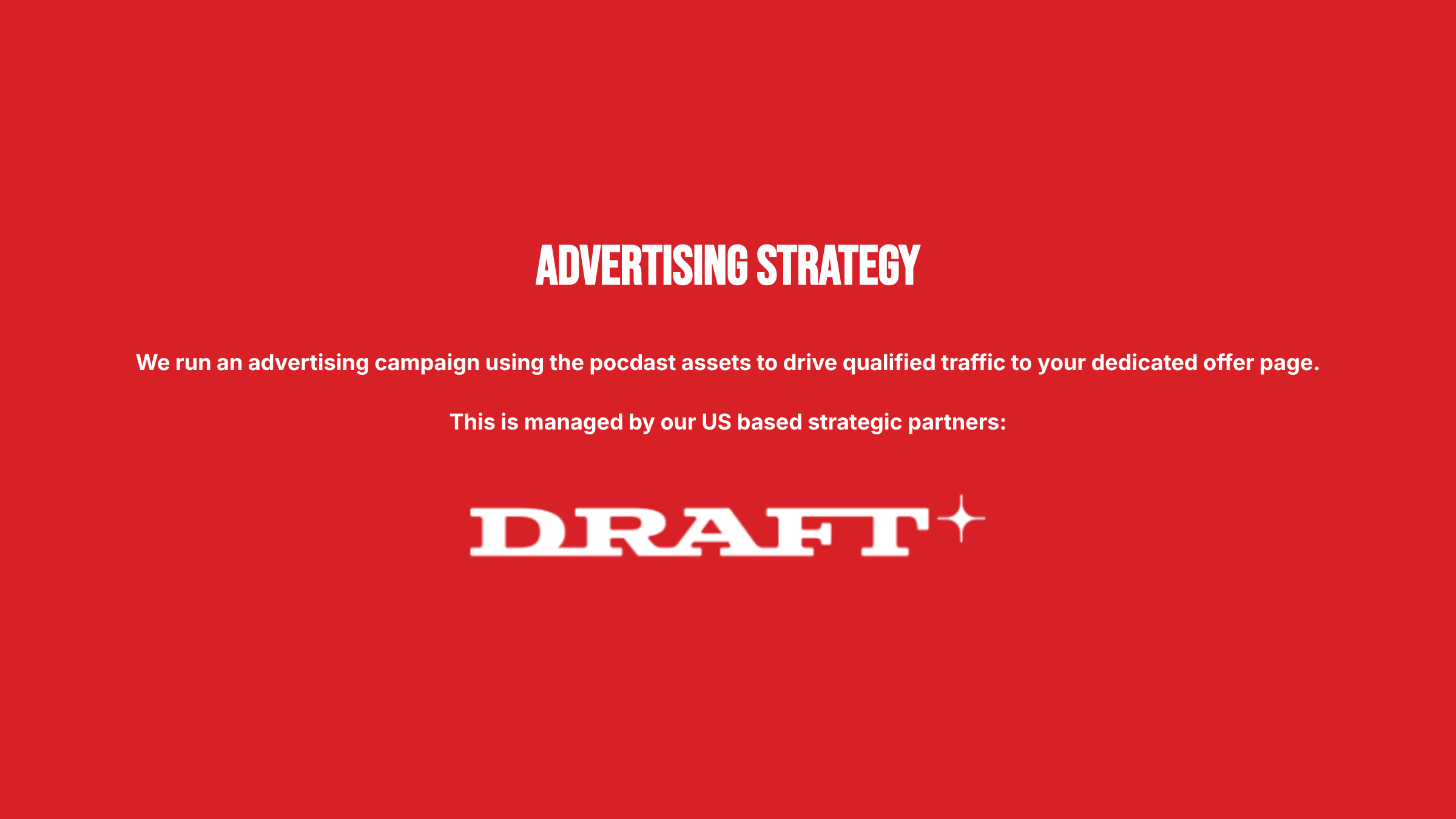 I partner with Draft Advertising in south Carolina, America, to take the best parts of the show and drive traffic to your specific landing page.
