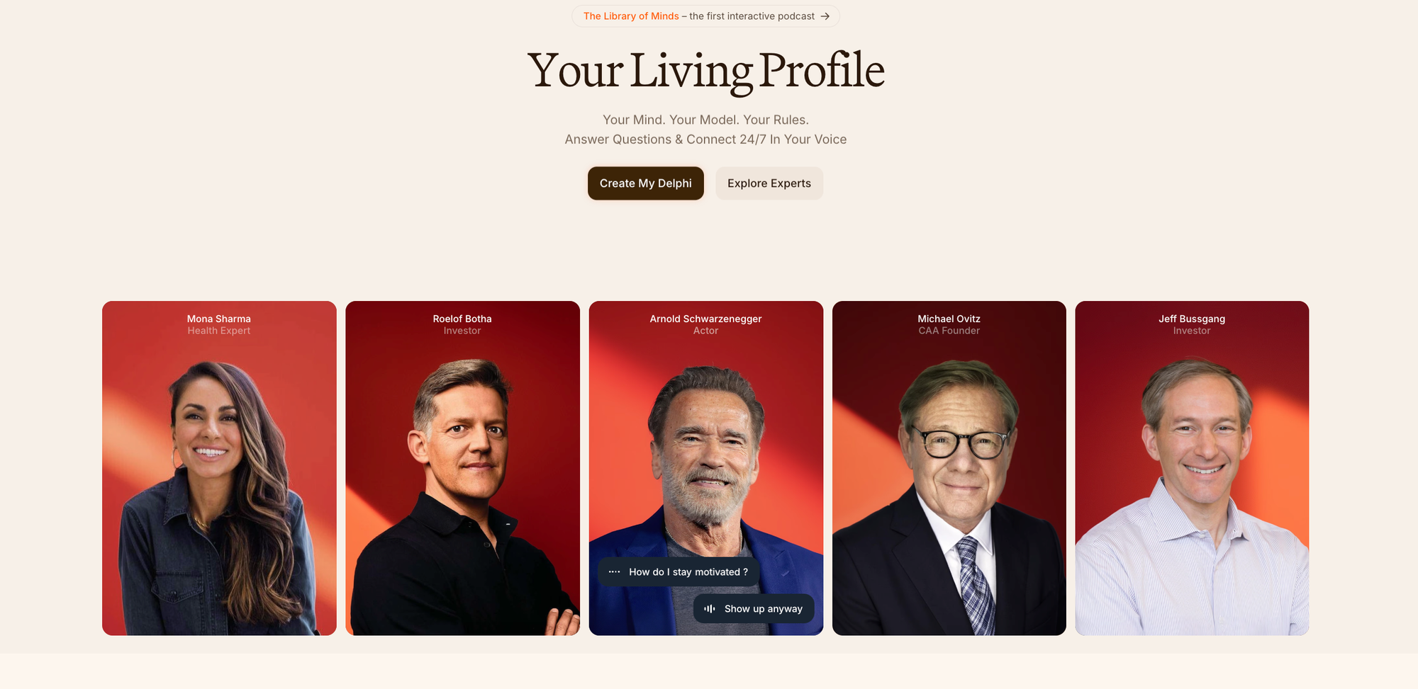 Big names are already on board. Think of best-selling author and podcast host Jay Shetty, product expert Lenny Rachitsky, or behavioural scientist Vanessa Van Edwards. They, along with executives like Brian Halligan and musicians like Sam Feldt, are using Delphi to scale themselves, not to mention the Terminator himself, Arnold Schwarzenegger.