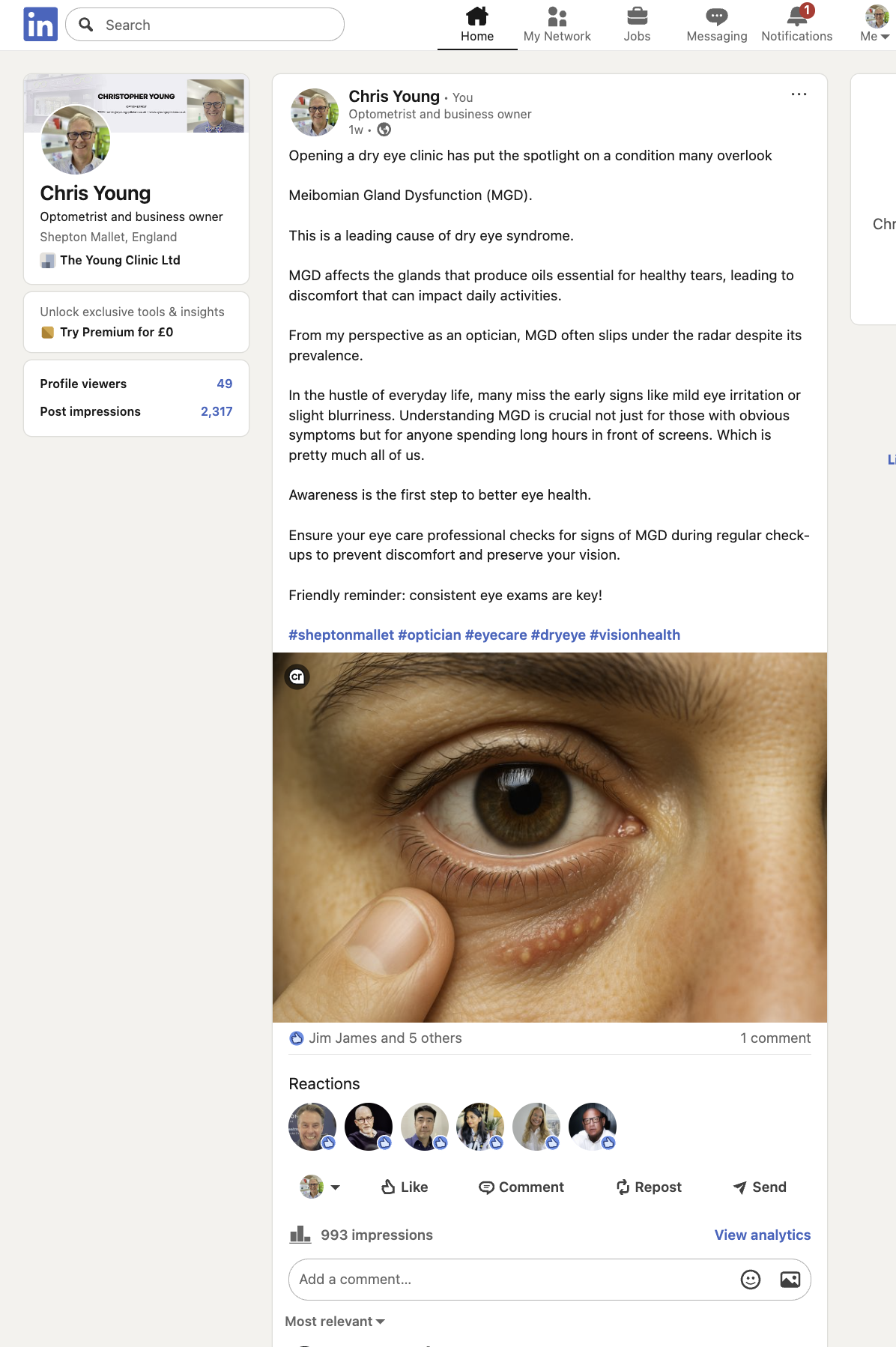 Chris Young runs a busy, award winning optometry practice in Shepton Mallet. He is so busy that he doesn't have time to post the content that will bring in new clients.