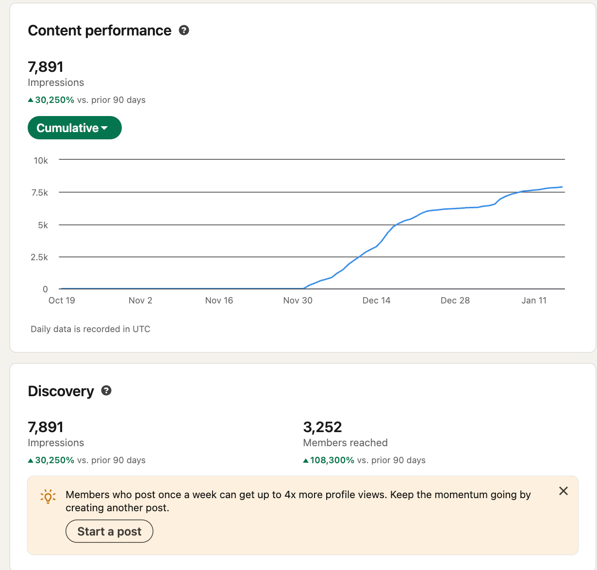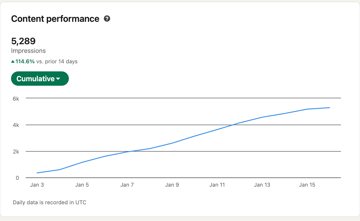 And what's not to love. Since I took over I've increased his impressions from essentially zero to over 5,289 in less than 2 weeks.